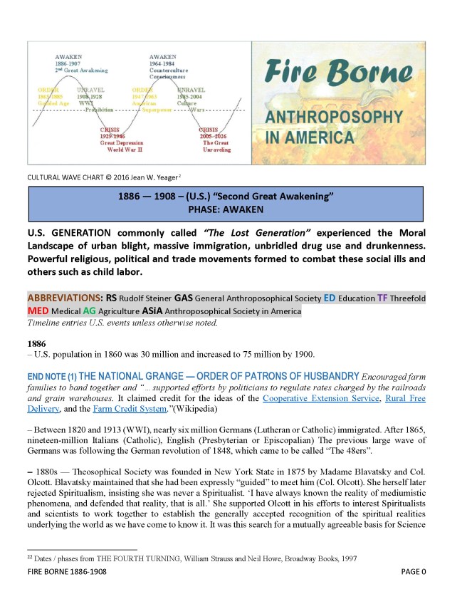 – Germany – Steiner enters the Theosophical Society and becomes its leader in Germany. The spiritually “awakening” social conditions attract large crowds to lectures on Karma and Reincarnation.